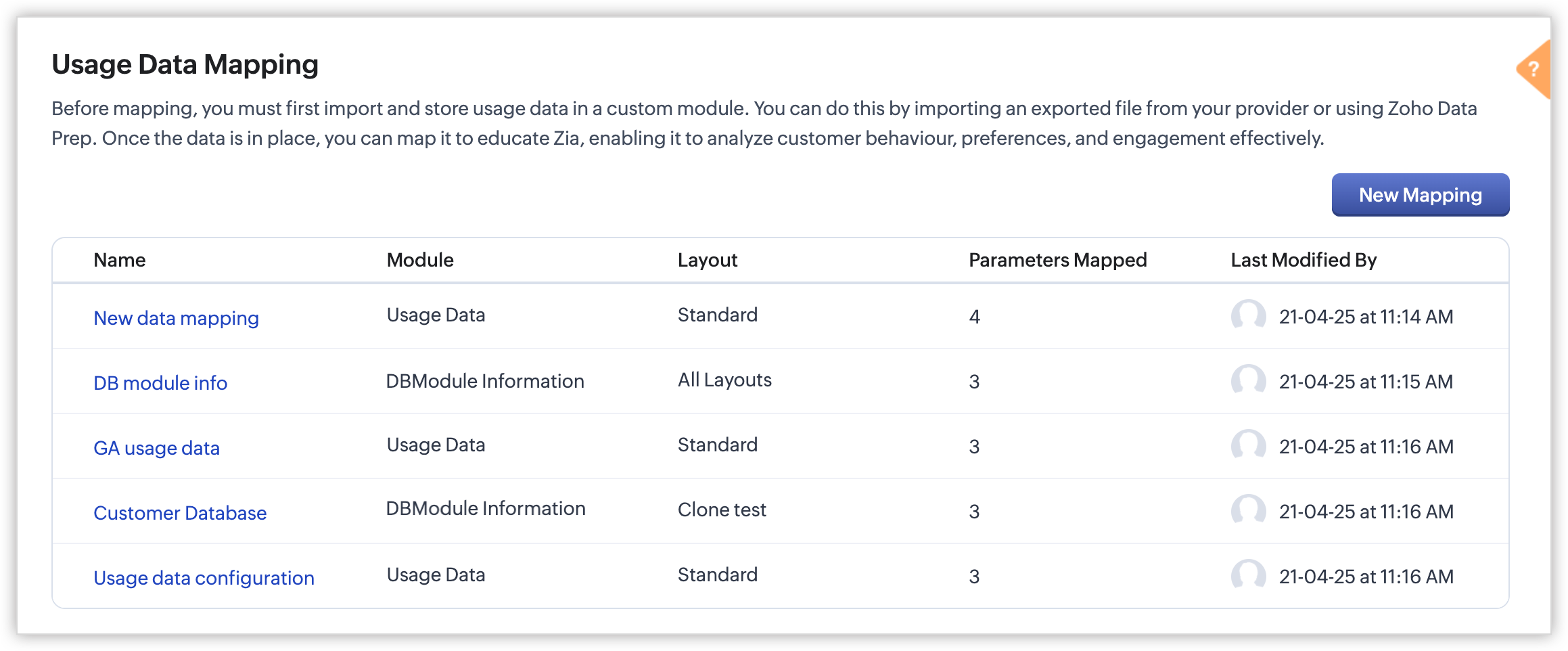 This is an important and exciting update about feeding usage data into Zoho CRM. To expand the scope of how usage data can be used by Zia, we are introducing a new section called Usage Data under Zia. Users can now easily import, edit, and update usage data within their CRM.