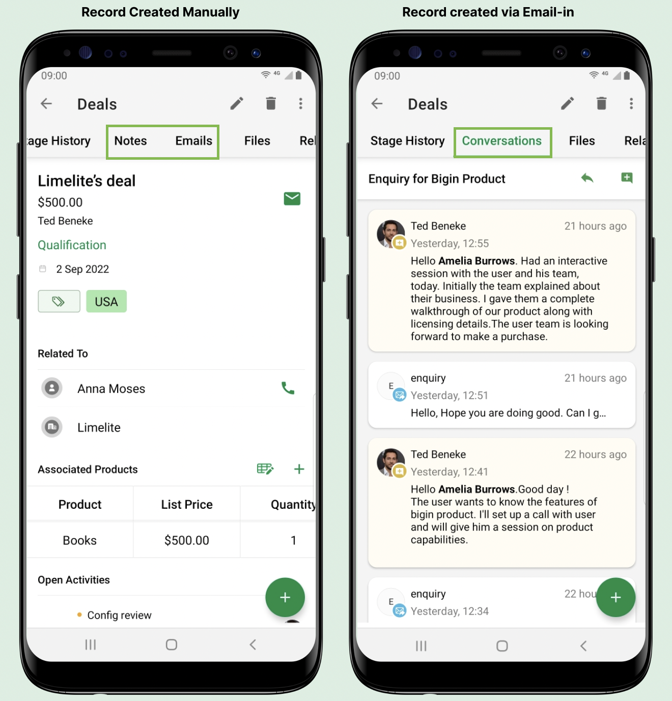 In the latest version of the Bigin Android mobile app (v1.4.13) and Bigin iOS mobile app (v.1.5.2), we have brought in support for Email-In feature.