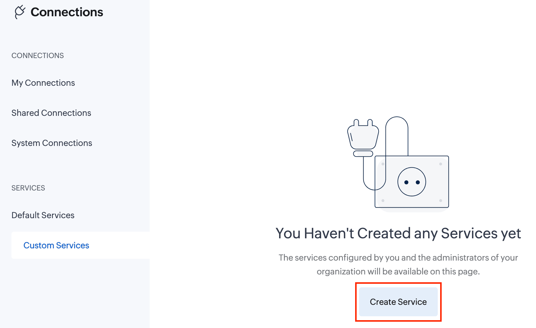 - In the Connections section, go to Custom Services and click the Create Service button.