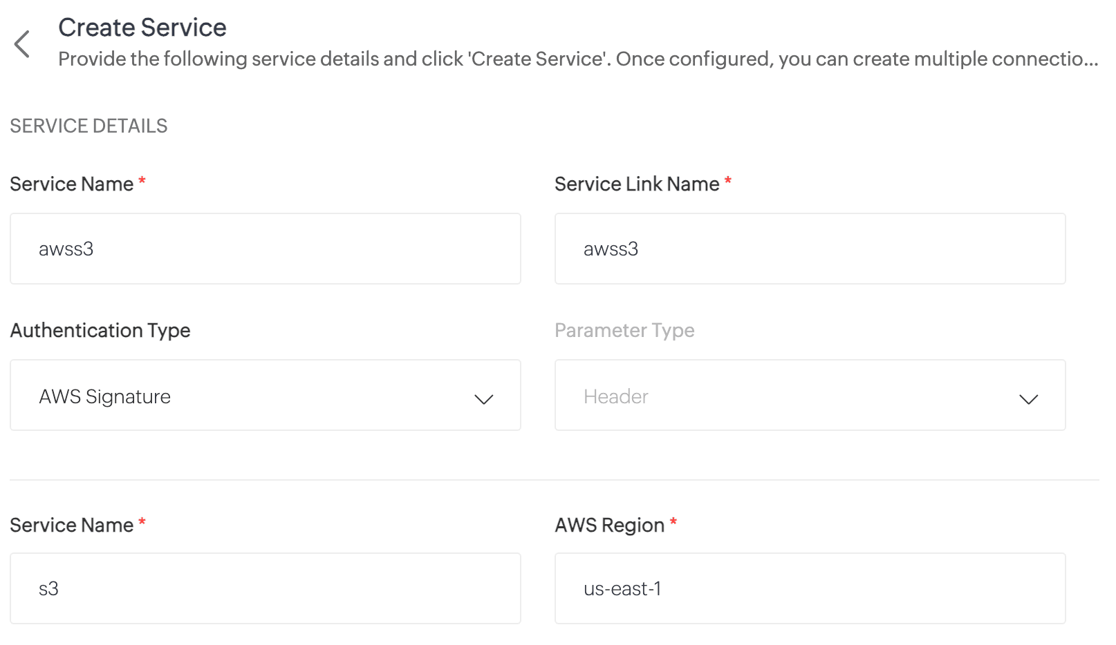 - Click Create Service. The AWS S3 custom service will now be created.