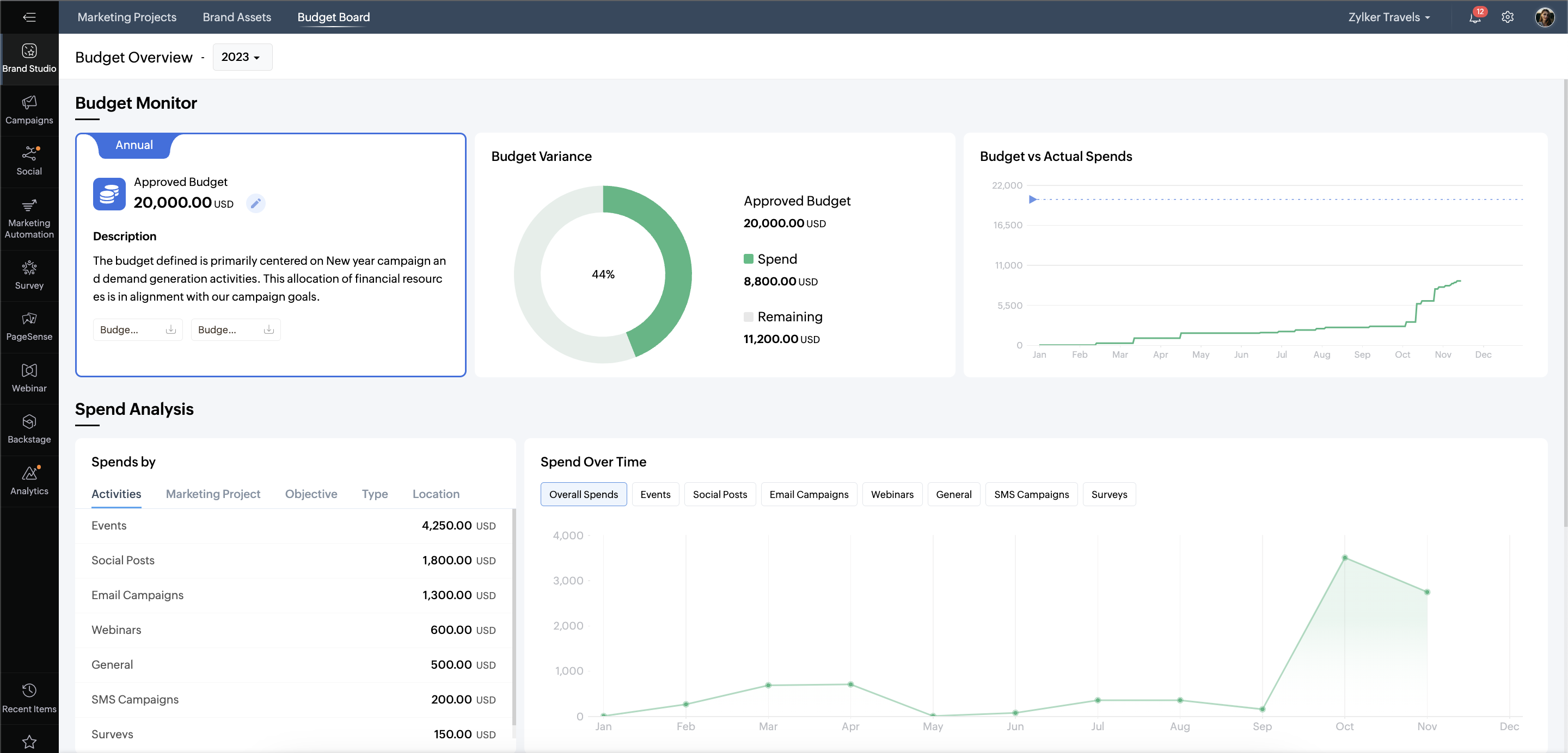Marketing teams can strategize budget planning for their different brands and delve into detailed time-based allocations, including yearly, quarterly, or monthly plans for different brands.