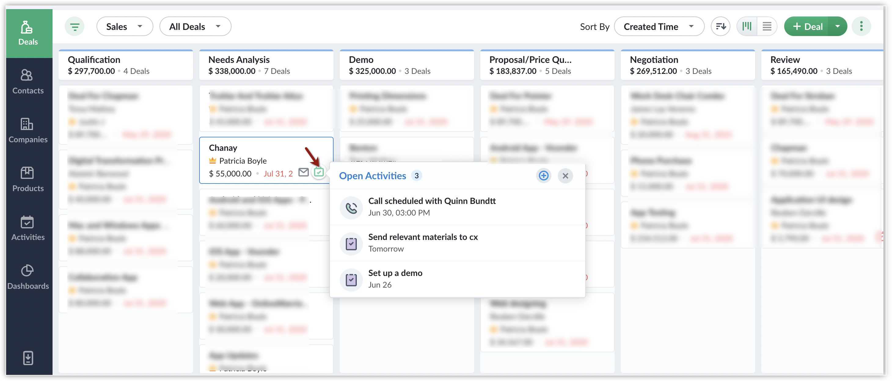 We have recently rolled out eight new actions in Pipeline view/List view that will enhance user experience with activities like tasks, calls and events.