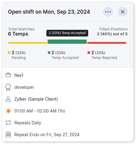 Additionally, the chart provides real-time updates on filled positions out of the total number of required temps, helping you track how quickly the open shift is being filled.