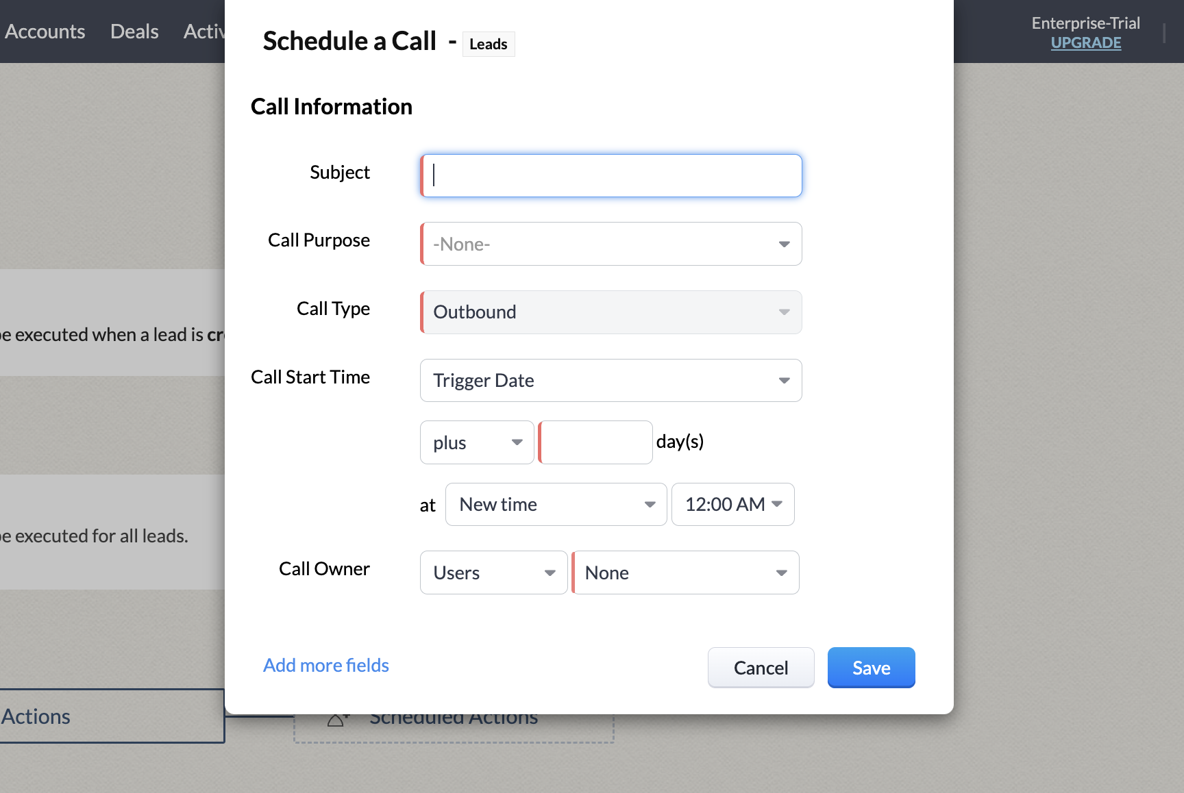 When a new lead enters your system, you may want your sales rep to follow up with the new lead to know the reason behind the lead signing up, as a part of your lead nurturing process.