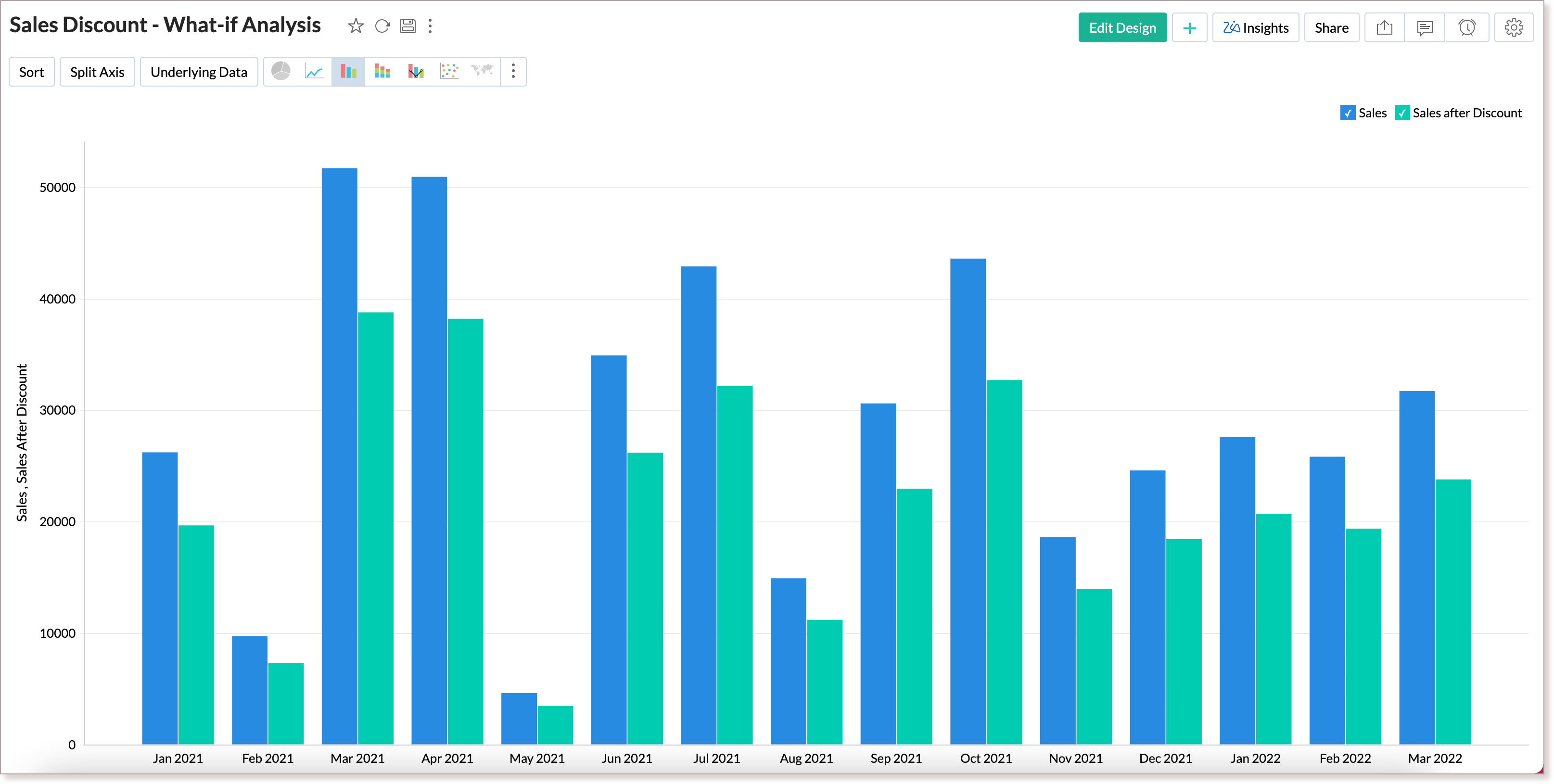 Here, we have created two variables to apply the change in discount percentage and sales volume.