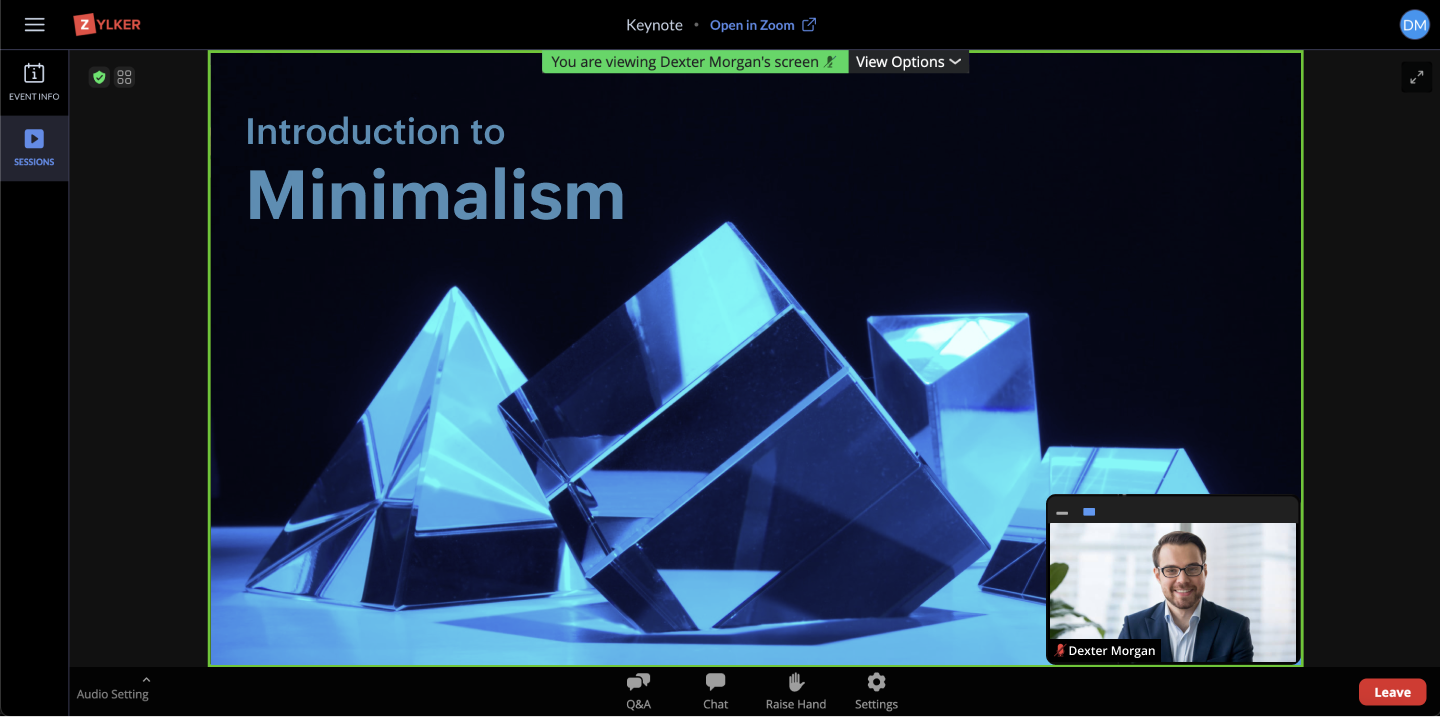 When using Zoom Meetings along with Backstage, you can seamlessly plan and conduct your sessions. You can also create polls for your session, which will automatically be populated in Zoom, and can rehearse sessions before the event. During your session, you can share your screen to allow participants to view any material as the session is being conducted. Apart from polls, the option for chat is also available for everyone. After the session, the poll results can be viewed on both Zoom and Backstage. Screen recordings can be captured as well and accessed later in your Zoom account. Along with this, Backstage allows you to see post-session analytics from the Summary tab inside the Sessions tab, which can help you gauge how your session went.