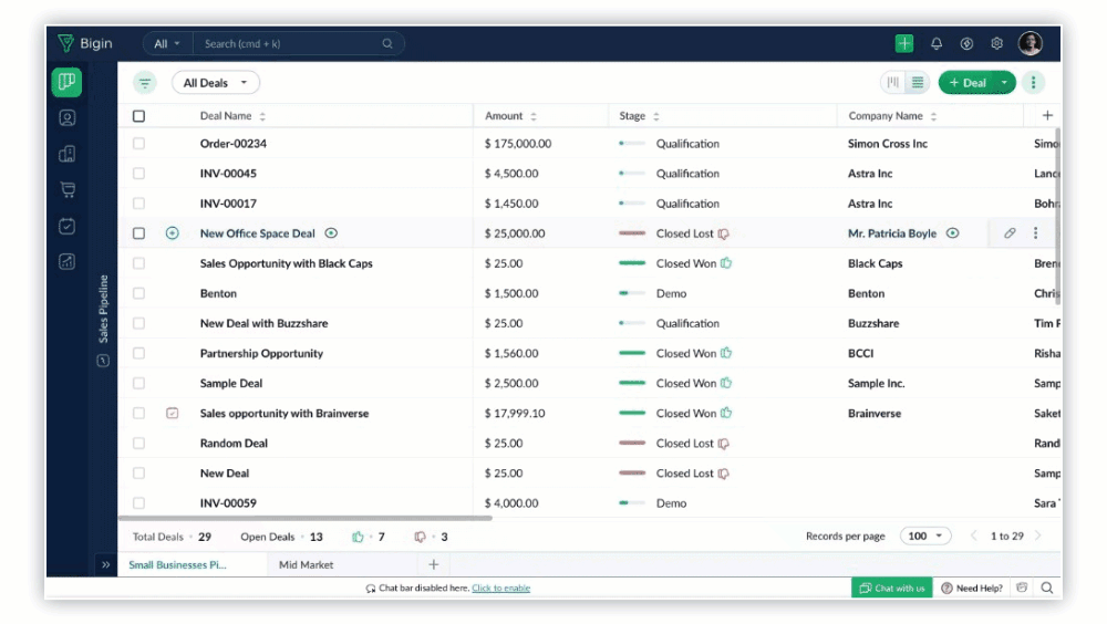 With this enhancement option 'Change Stage/Pipeline' you may now select multiple records from any pipeline and move them to a different stage, sub-pipeline, or team pipeline.