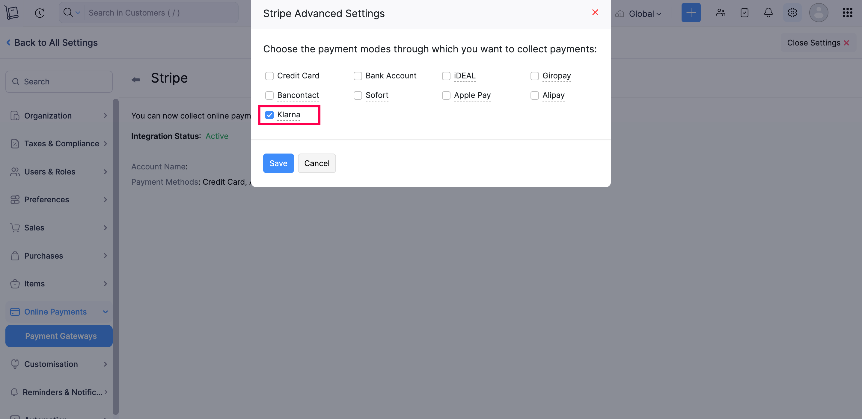 Introducing Klarna, a global payment method now available in Zoho Inventory through Stripe. With Klarna, you can make payments immediately or split them in instalments. This offers your customers greater flexibility and convenience in managing their payments.