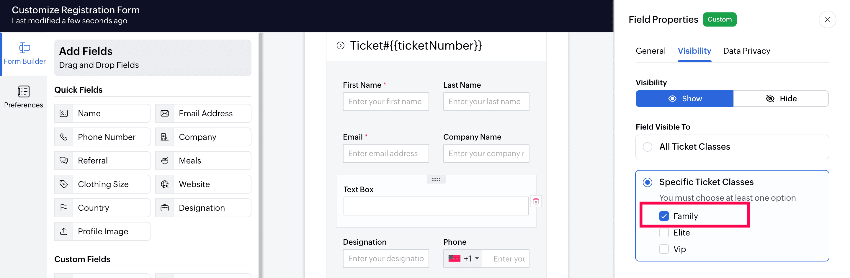 The example in the screenshot includes one VIP primary ticket and two Family companion tickets.