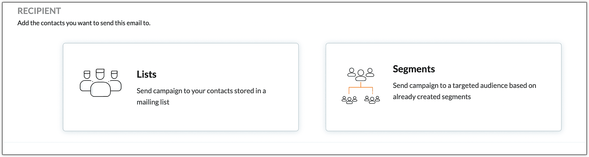 Para enviar sua campanha, você precisa de uma lista de contatos para receber os e-mails. Se você tiver seu banco de dados de contatos salvo em seu desktop ou em uma planilha do Google, você pode importar esses contatos e salvá-los como uma lista de e-mails ou um segmento.