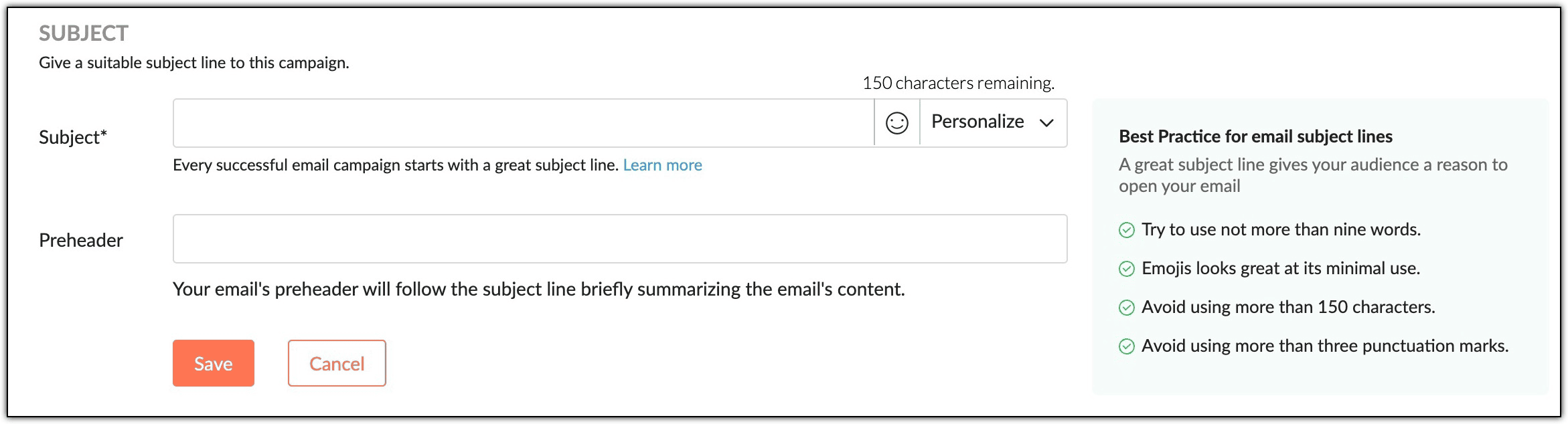 Pré-cabeçalho: Na sua caixa de entrada, o pré-cabeçalho é o texto curto que vem após a linha de assunto e comunica a essência do e-mail. Ele só pode ser visualizado na visualização de lista da sua caixa de entrada e deve ser convincente o suficiente para que seus contatos abram o e-mail.