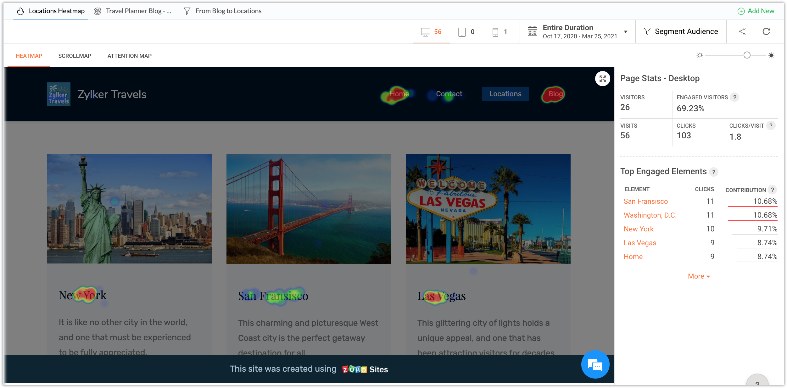- Mapa de Calor: Isso permite que você analise onde os usuários clicam, até onde eles rolam e em qual parte da página eles passam mais tempo. Mapas de rolagem permitem que você analise como os visitantes rolam a página. Mapas de atenção permitem que você analise em quais áreas da página os visitantes passam a maior parte do tempo.