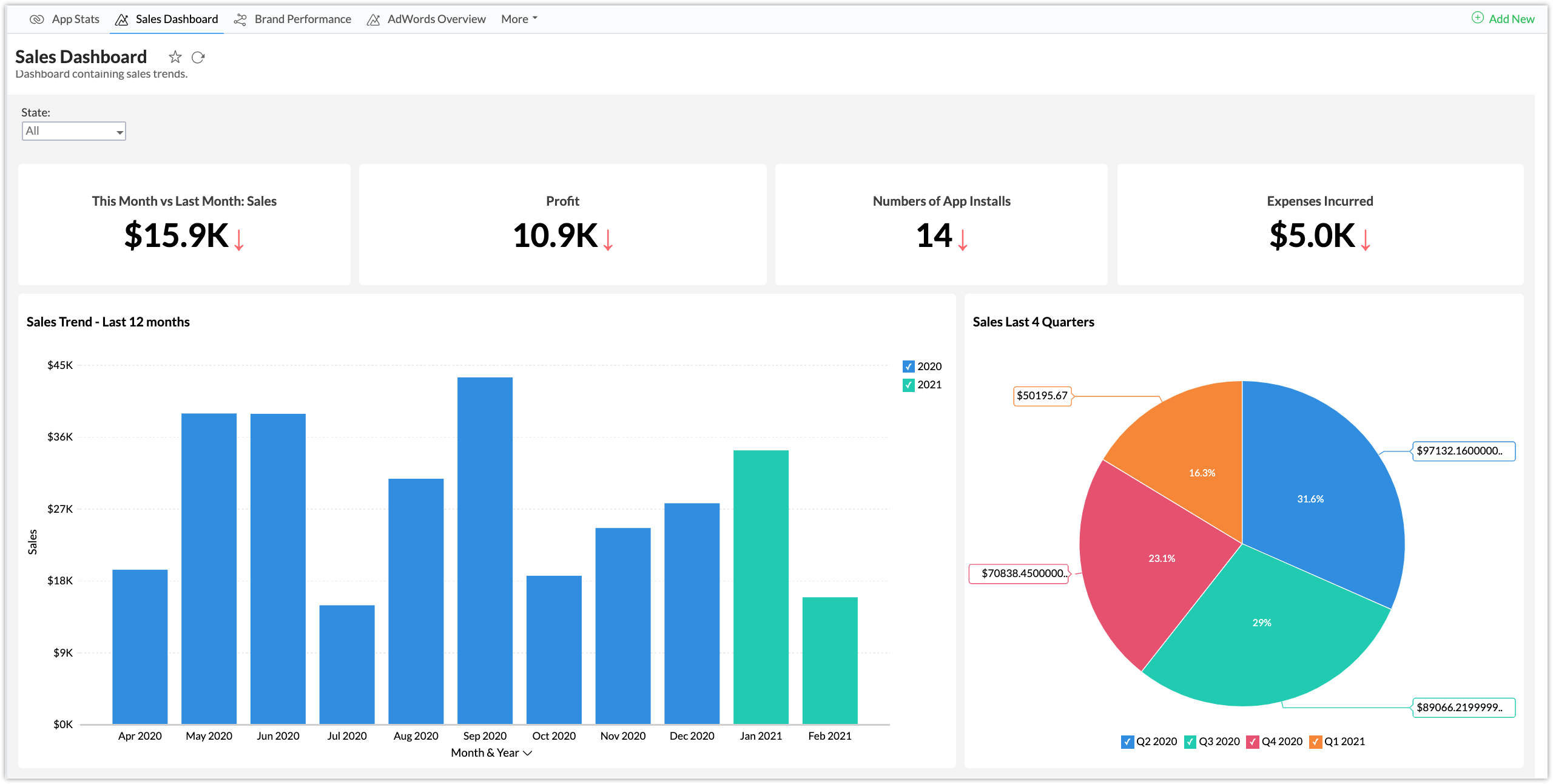 Todos os dashboards que você criou no Zoho Social, Advanced Analytics e CRM podem ser adicionados ao Brand Studio para que você possa monitorá-los de um só lugar.