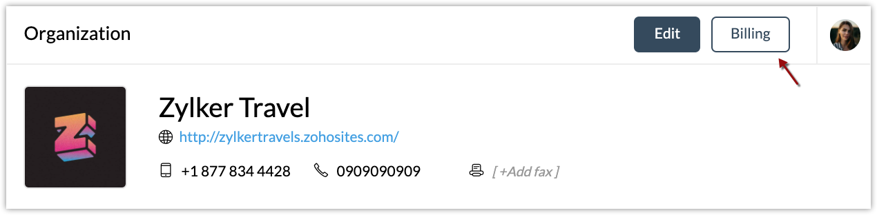 Detalhes da Organização As informações sobre sua organização, como logotipo, site, números de telefone e celular, fax, endereço, fuso horário e idioma, podem ser especificadas na página de Detalhes da Organização. Para gerenciar os detalhes da ...