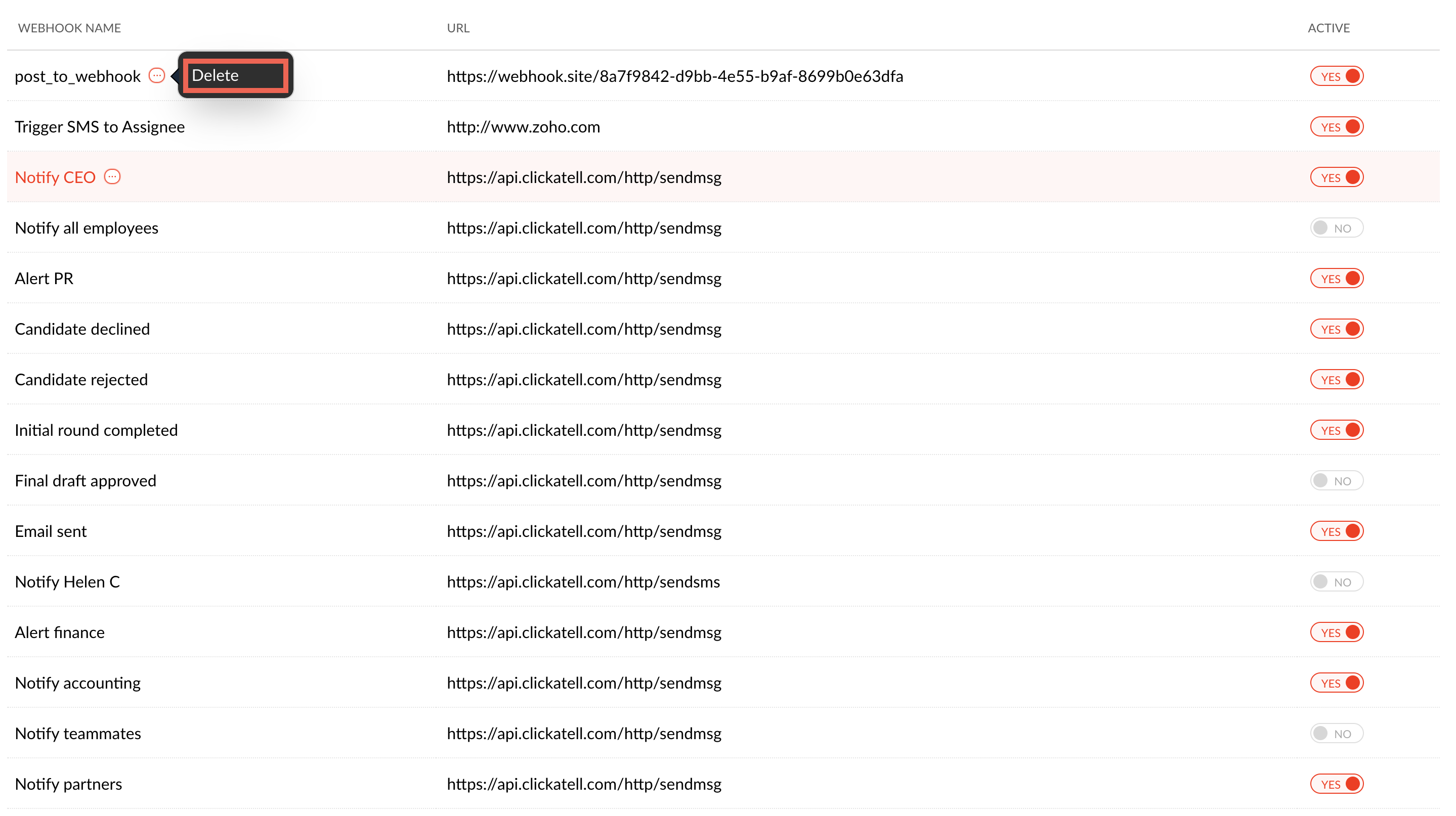 Visualize o URL completo do webhook a ser enviado ao aplicativo de terceiros. Este campo não pode ser editado. |