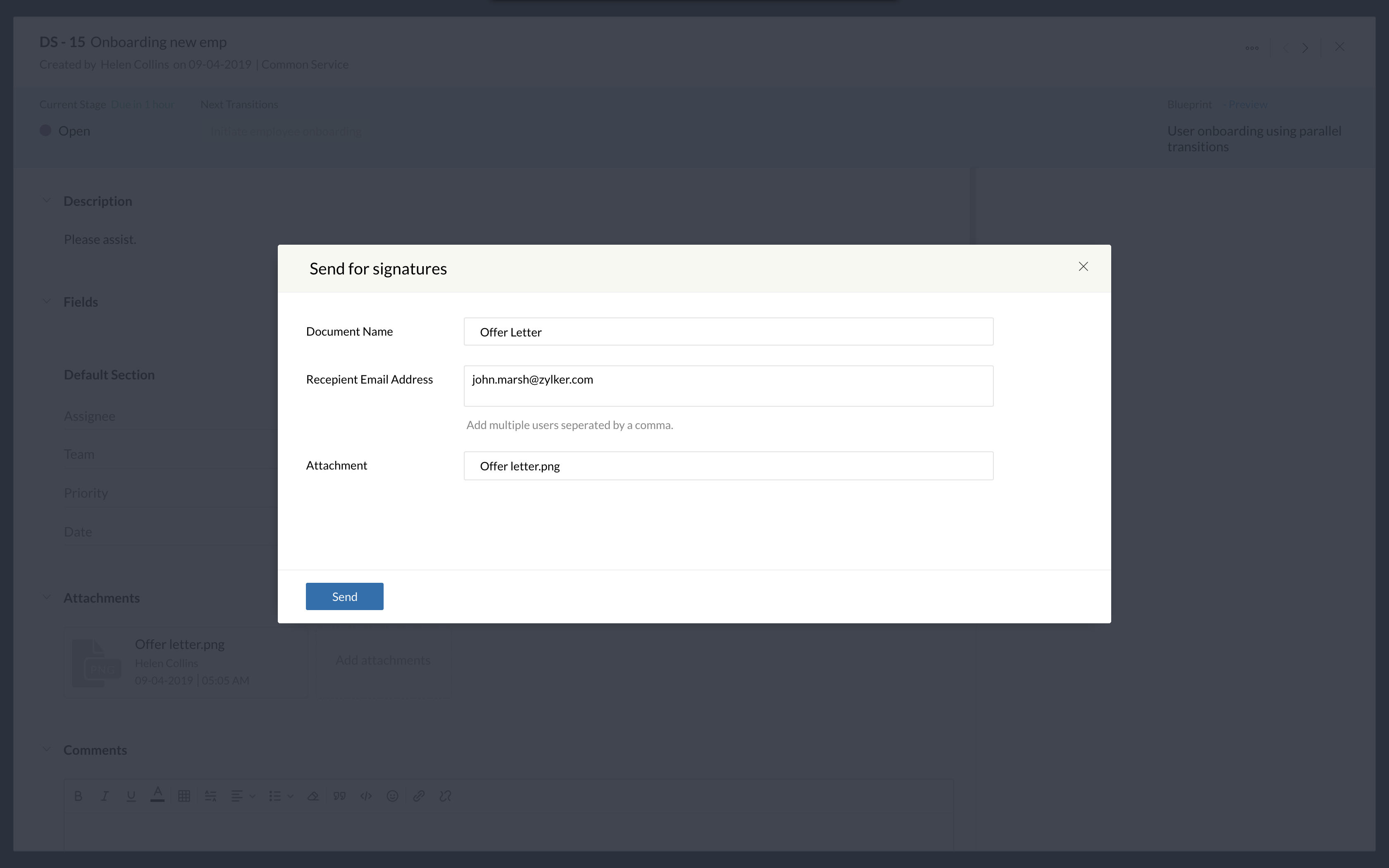 Envie um documento para assinaturas usando o Zono Sign no Qntrl