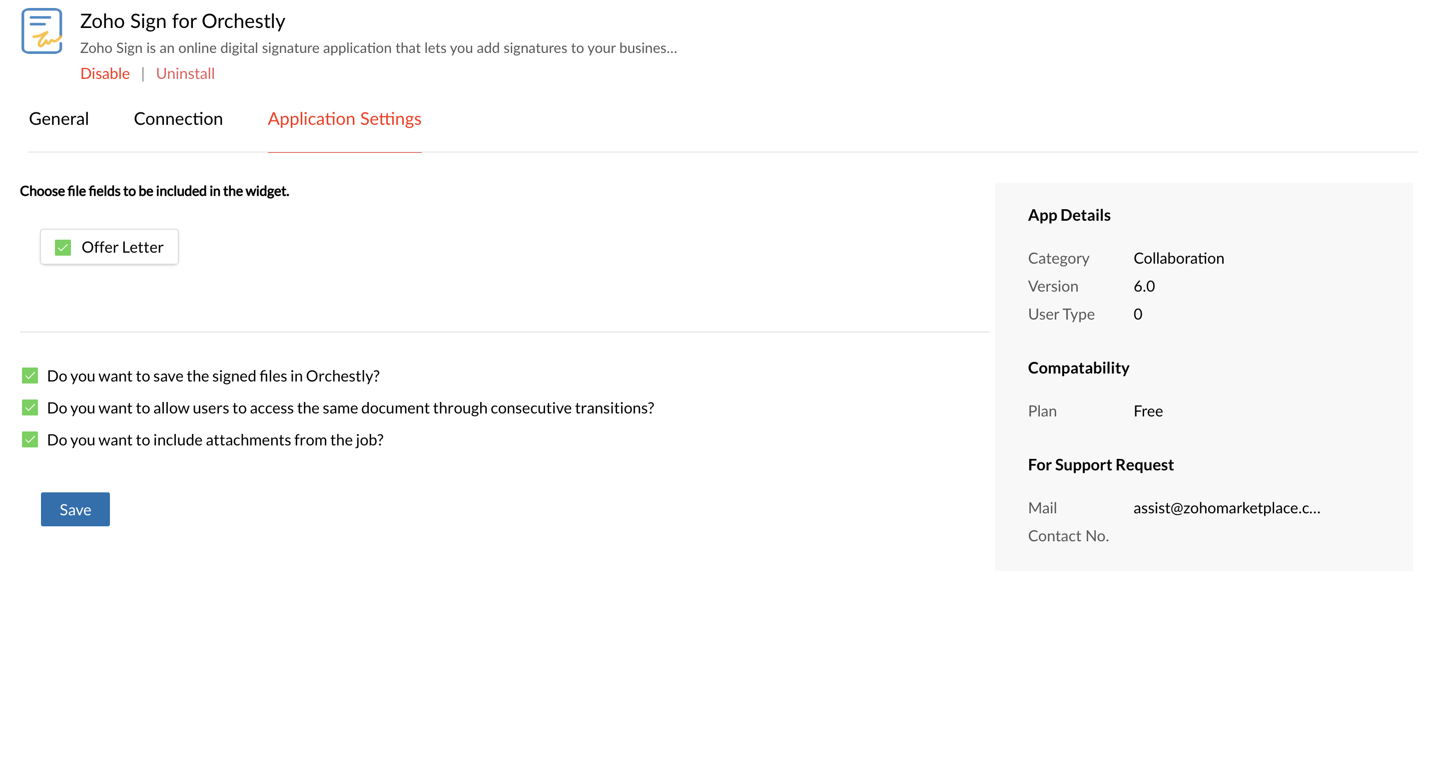 Somente o proprietário da organização pode autorizar a extensão do Zoho Sign. Todas as atividades realizadas nesta extensão pelo usuário ou proprietário da organização serão realizadas pela conta autorizada do Zoho Sign.