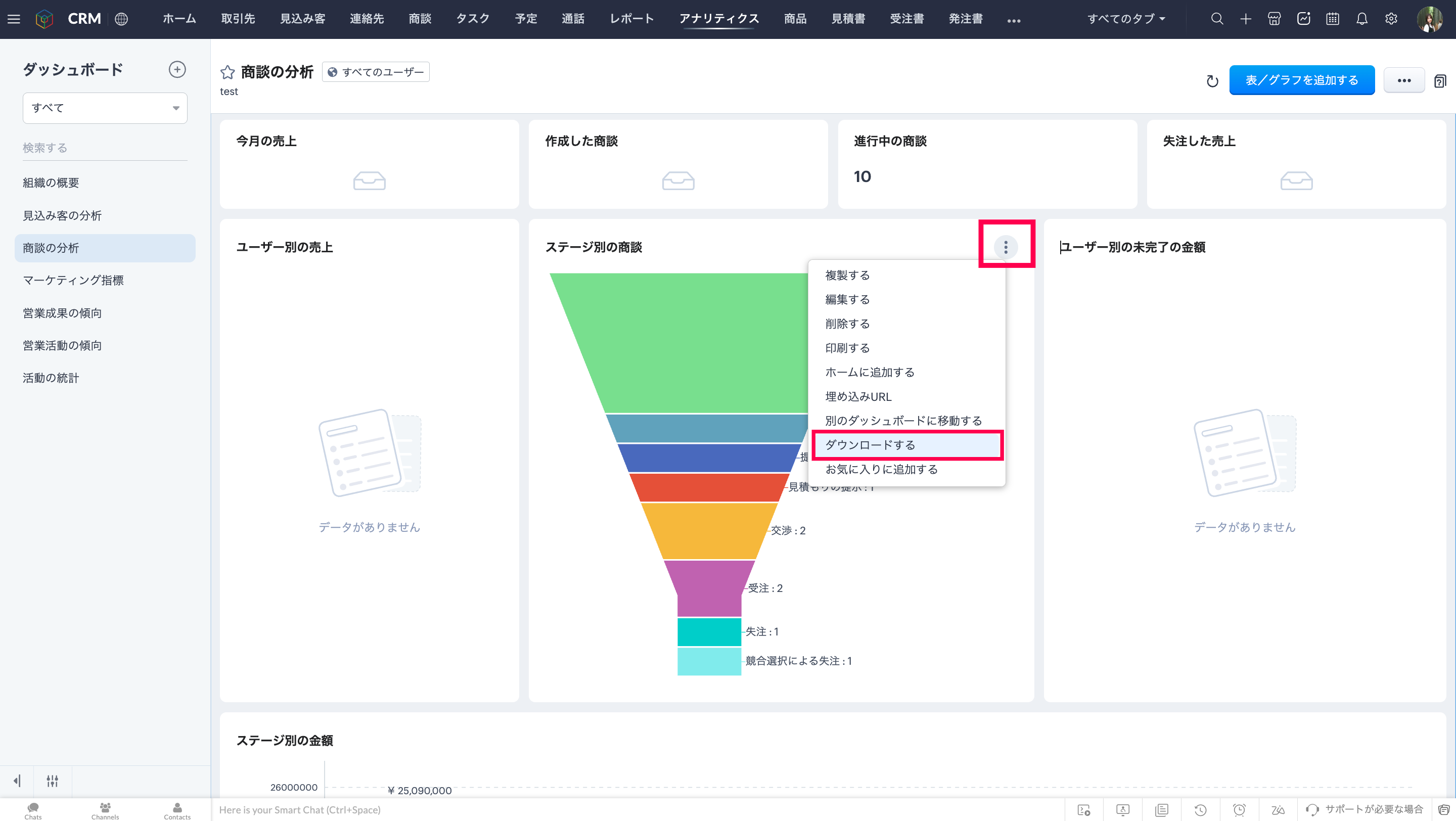 エクスポート対象のグラフの右上の3点リーダーをクリックし、「ダウンロードする」をクリックします。