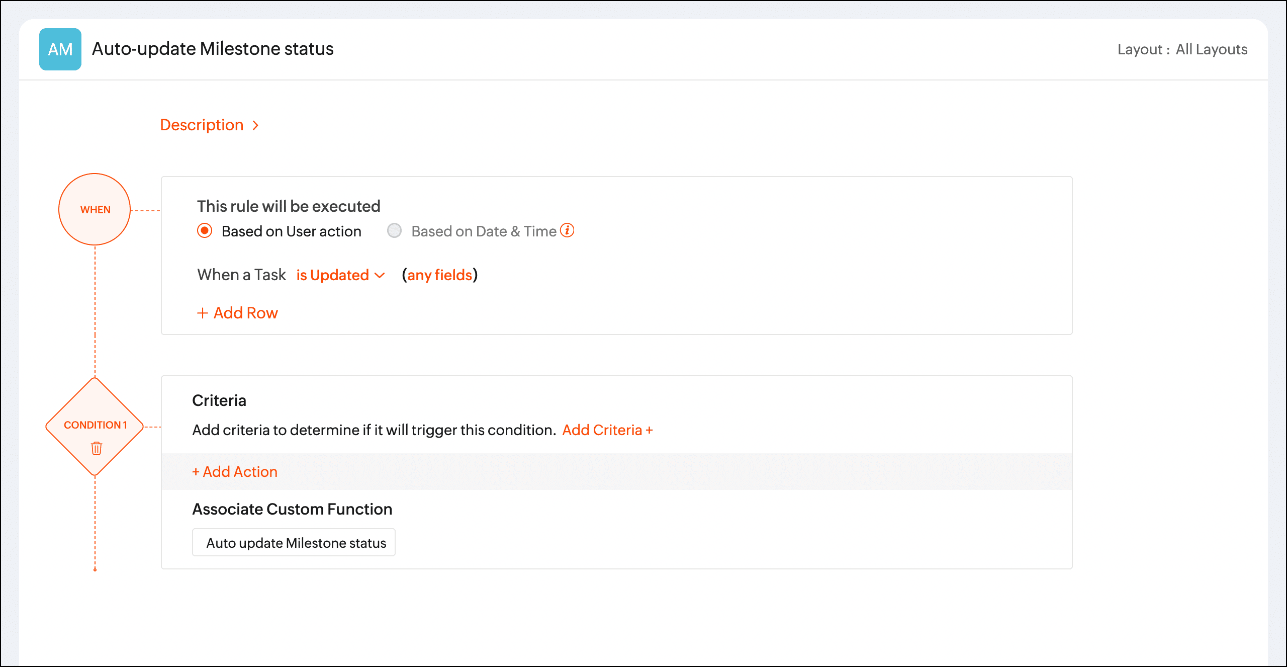 when task is updated" and associate the custom function under