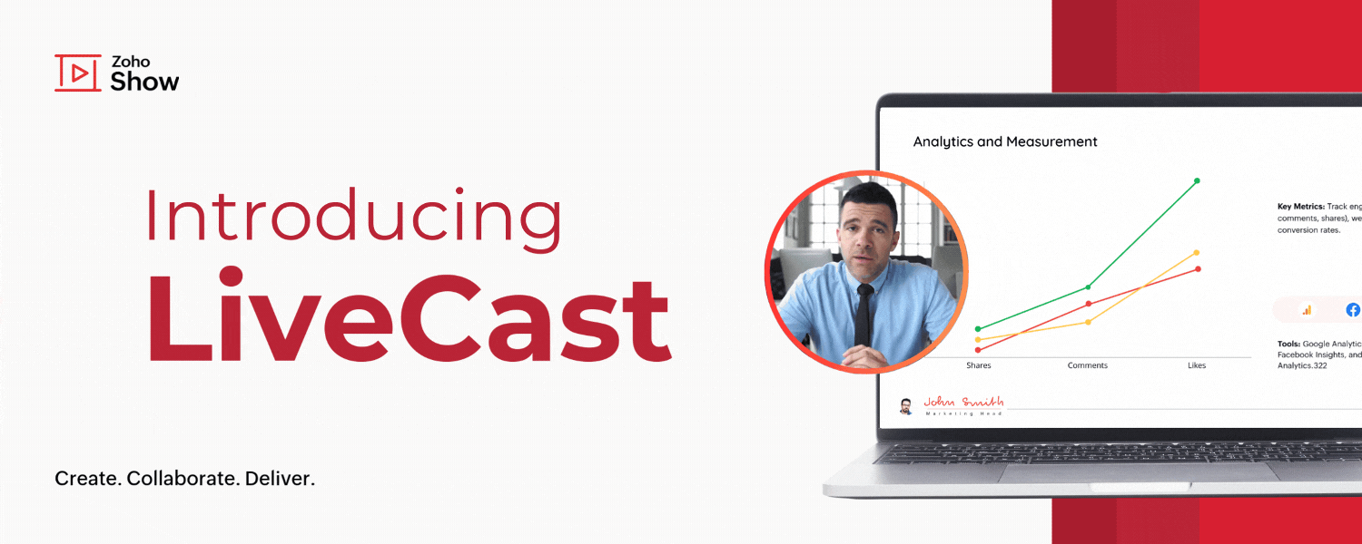 One way to build these connections is by letting your audience see you while you present. To make this possible, we’re excited to introduce LiveCast in Zoho Show!