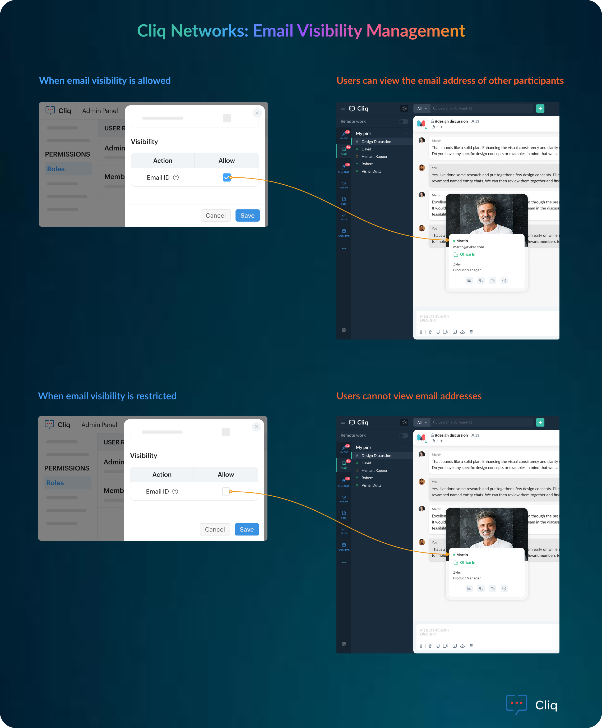 Administrators can now restrict the visibility of email IDs to specific roles directly from the Network's admin panel. This feature provides an additional layer of privacy protection for your organization by preventing external users like vendors and partners from accessing sensitive contact information, ensuring confidentiality.