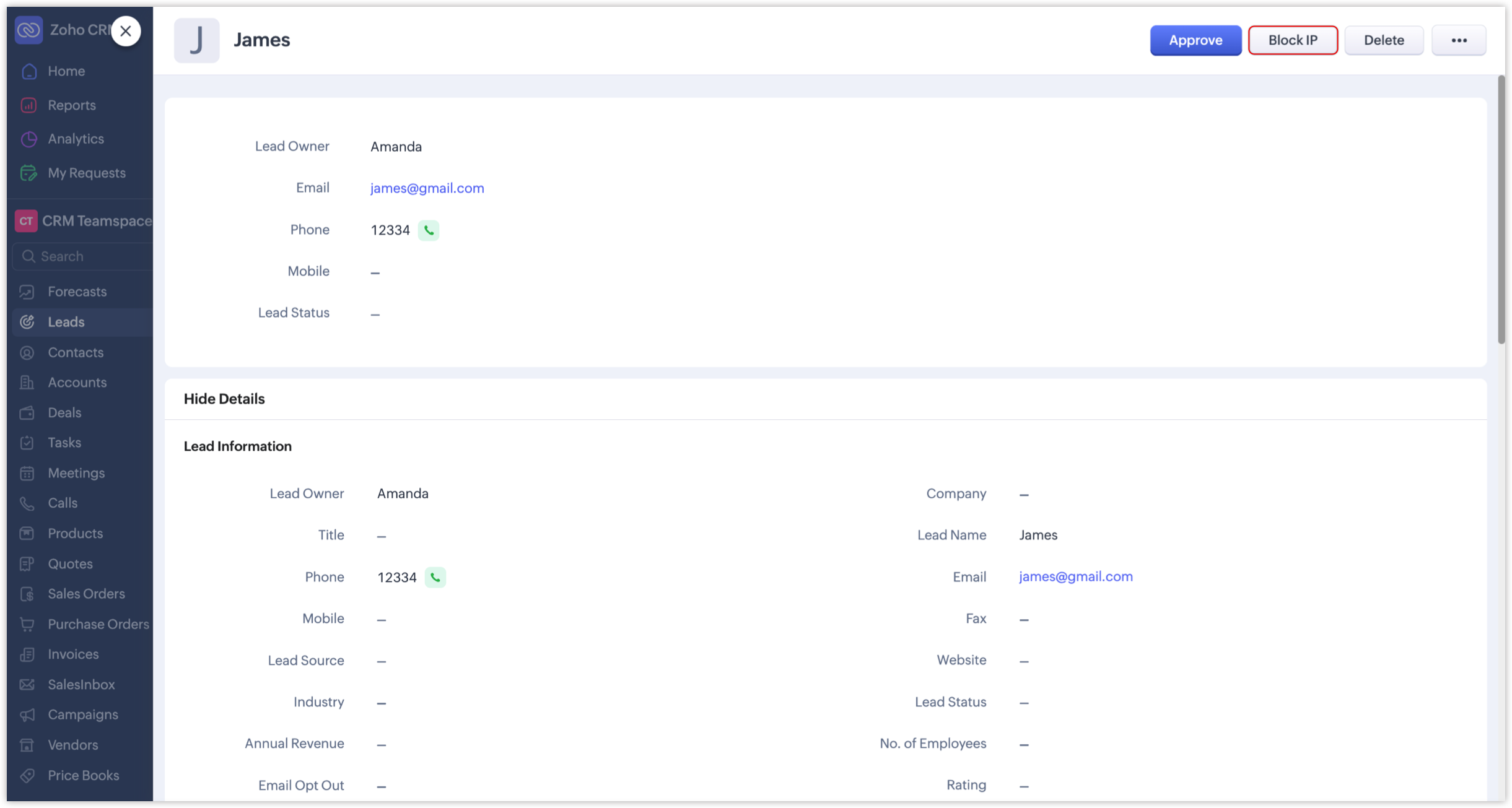 Additionally, Zoho's system internally maintains a set of blacklisted IPs based on security assessments. Records submitted from those IPs will be automatically and permanently blocked by the CRM.