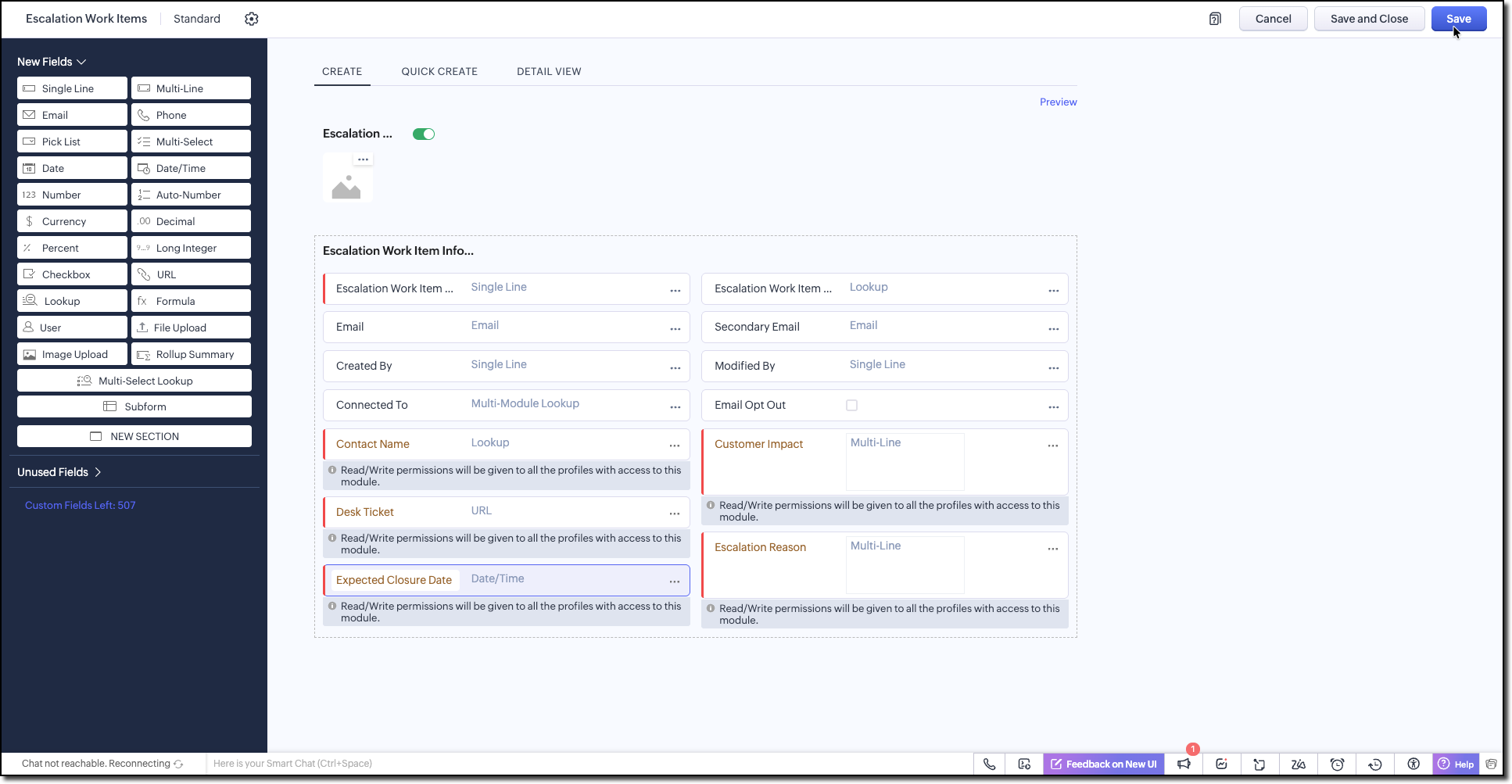 3. Create a custom module named Escalation Work Items in Zoho CRM to store escalation records.