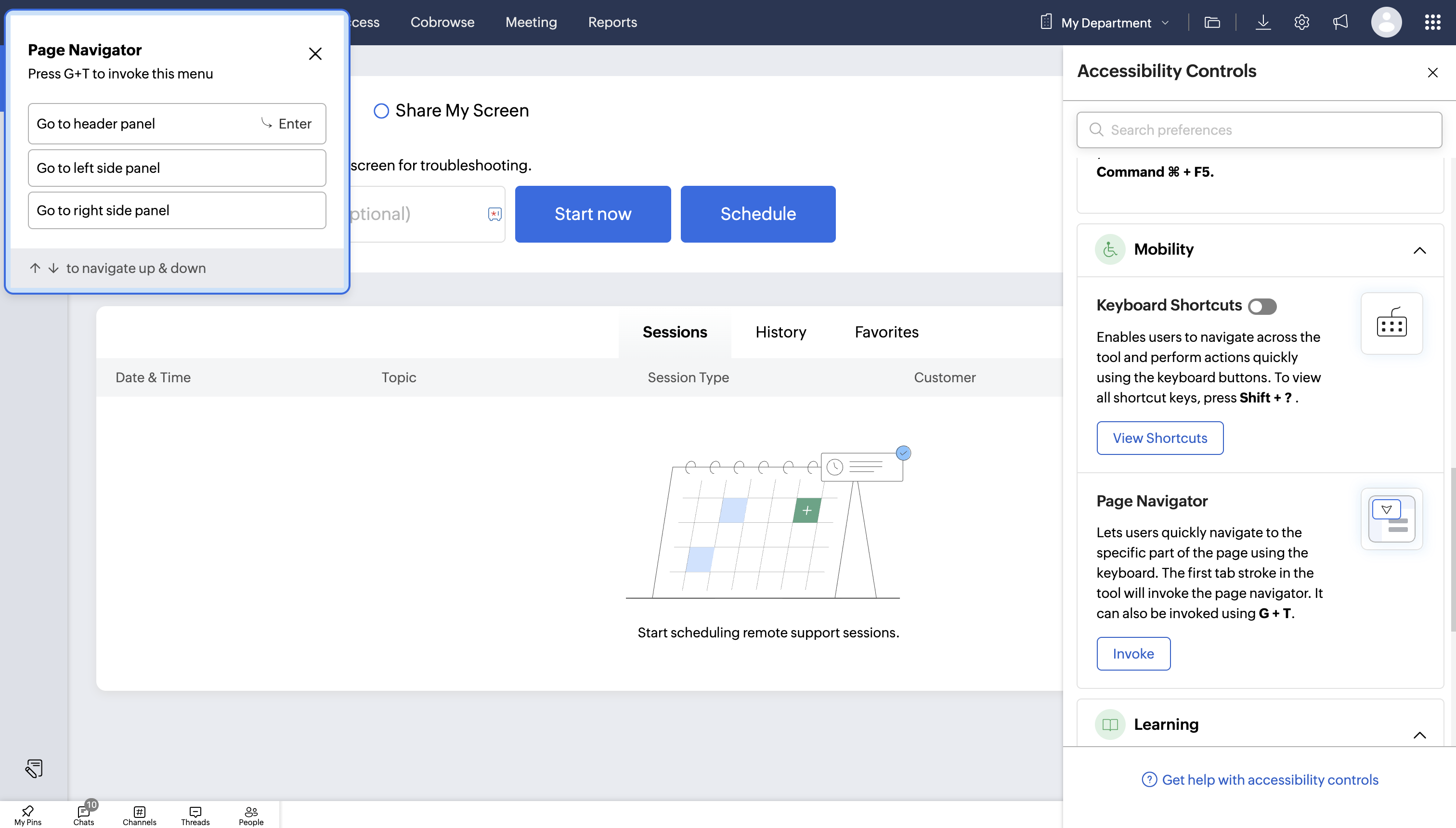 Remote support should be easy to navigate for everyone. For users with mobility-related accessibility needs, long sessions and complex navigation can be challenging. Zoho Assist’s Mobility Accessibility Controls simplify interaction through keyboard-based navigation, helping users move through the interface efficiently and work more comfortably during remote support sessions.