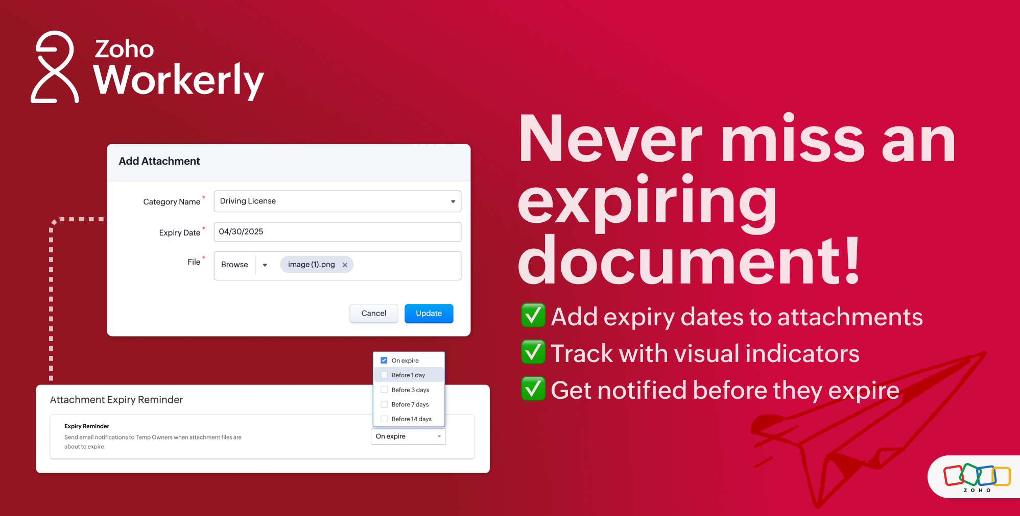To ensure you never miss an expiring document, you can set up Attachment Expiry Reminders to notify temp owners before a document expires.