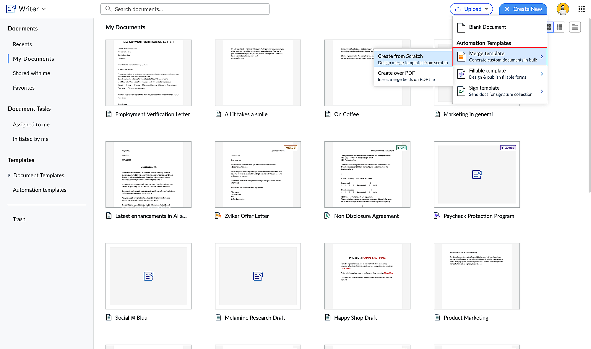 We're excited to share that we've enhanced Zoho Creator's integration with Zoho Writer to make this combination even more powerful. You can now use Zoho Creator as a data source for mail merge templates in Zoho Writer.