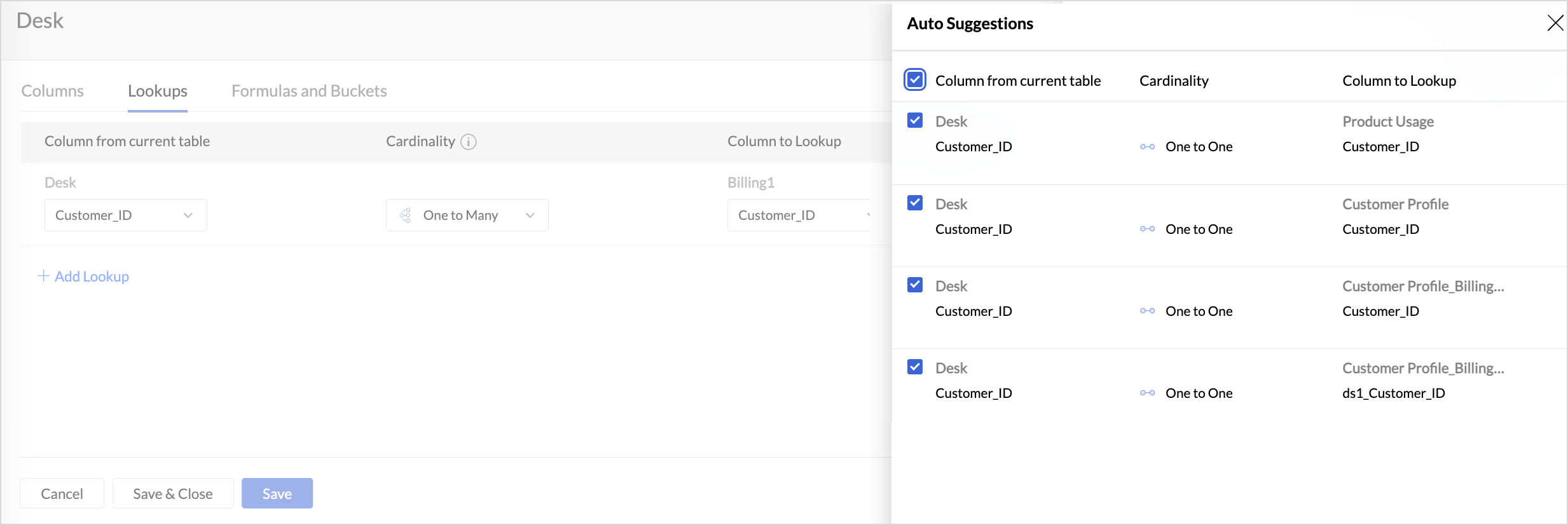 Zoho Analytics now offers lookup suggestions based on your table’s metadata. These smart recommendations help you: