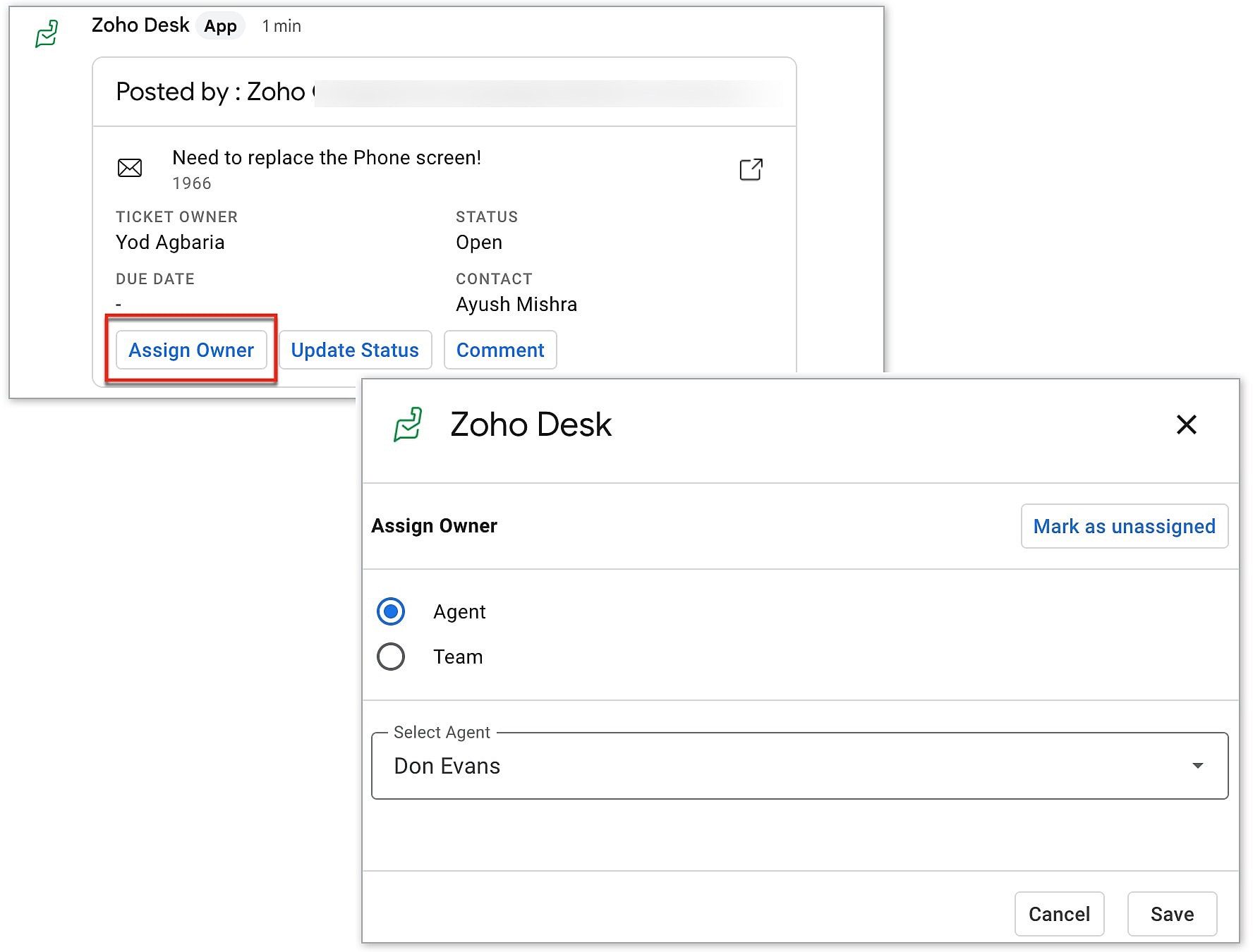 Imagine a user operating an e-commerce business. With this integration, their customer support team can swiftly address customer inquiries without leaving Google Chat. For instance, an agent can view a support ticket in Google Chat Spaces, assign it to a team member, and update its status—all within the chat interface, saving time and reducing chances of inadvertent errors.