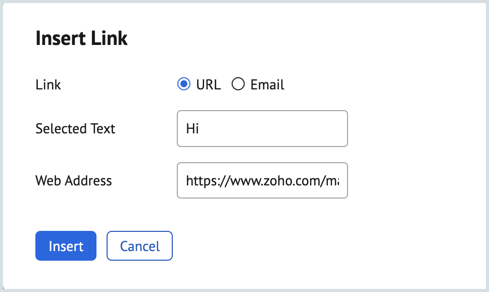 Làm thế nào để chèn hyperlink/URL vào phần soạn thảo?