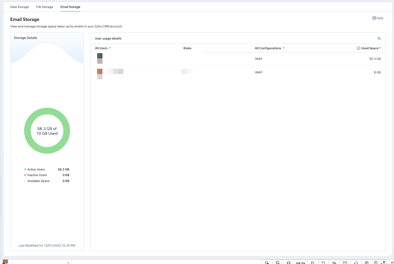 We’ve had Zoho One for almost 5 years and have always synced our emails from Gmail via IMAP… As of late, we’ve run into issues with our emails not syncing, due to being over the 10GB storage cap… What’s very odd is that we haven’t changed a thing? I know