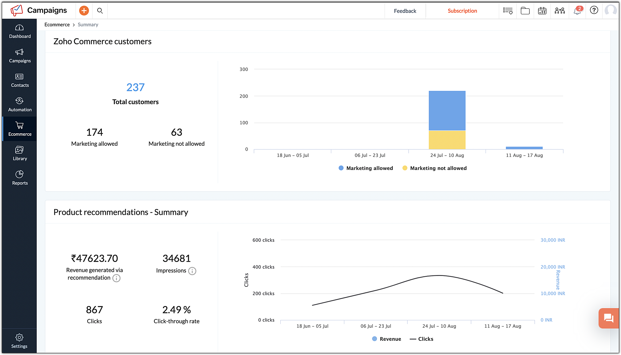 This update is available to all the users who've integrated their Shopify, WooCommerce, or Zoho Commerce stores with Zoho Campaigns.