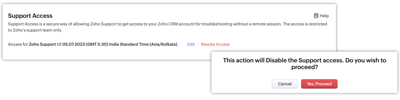 We are pleased to launch Support Access, which enables you to grant temporary access to your Zoho CRM account for a Zoho technical support representative. This allows them to identify and resolve any problems or issues you may be experiencing.