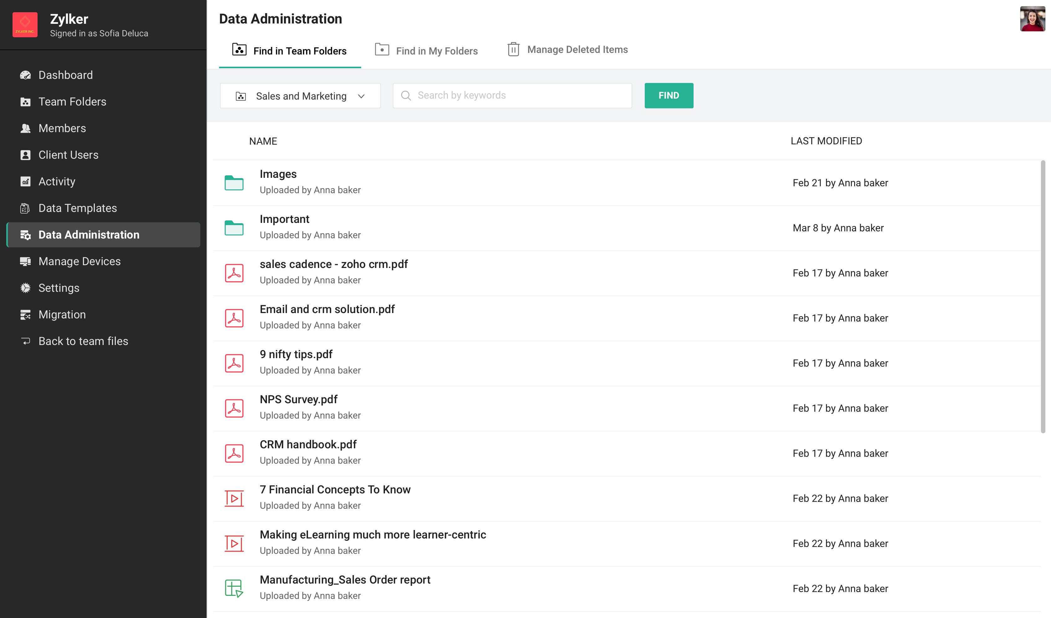 通过“管理控制台”中的“数据管理”选项卡,您可以完全控制团队的数据。在此选项卡中,您可以: