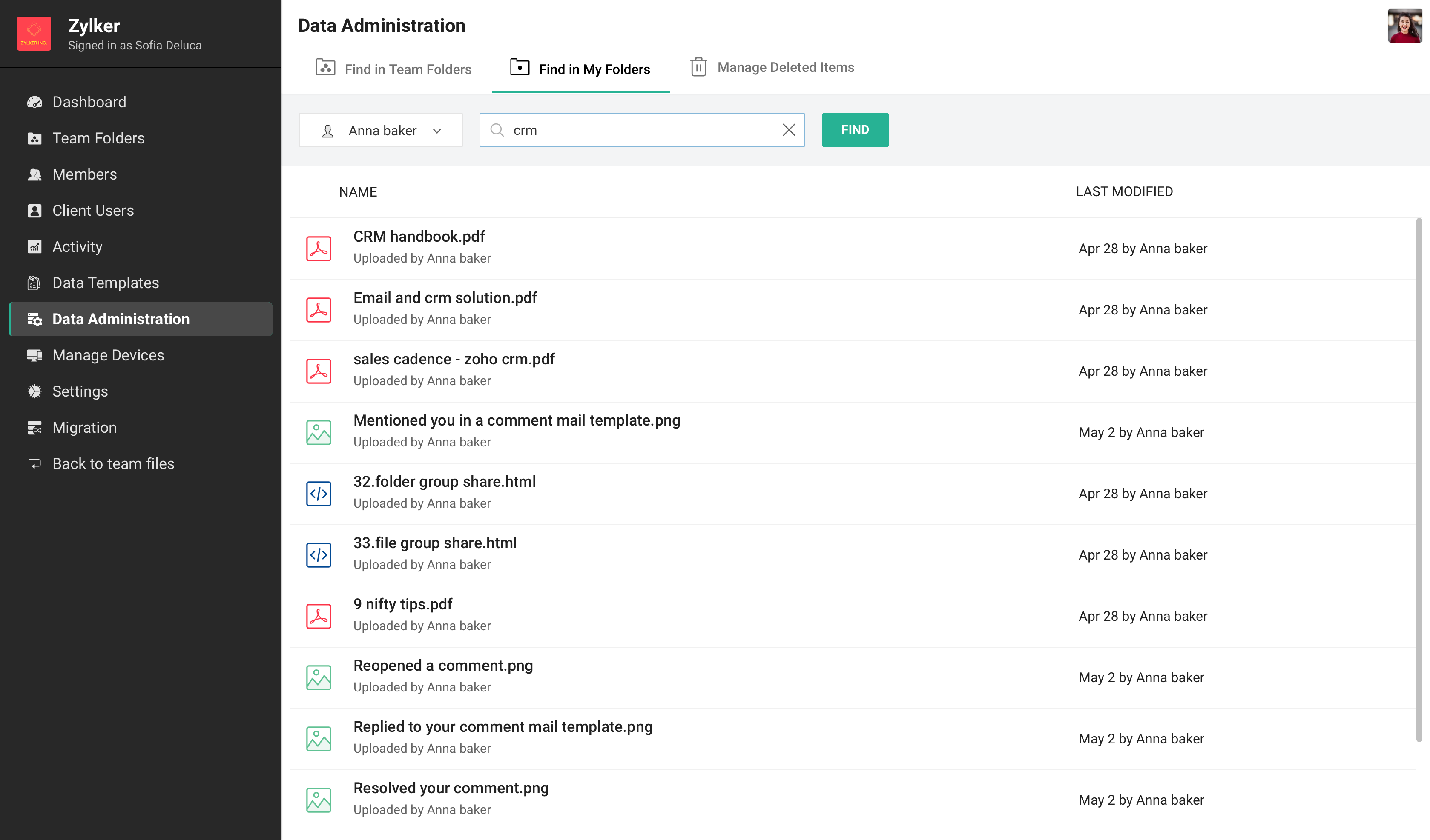 - 目前仅 WorkDrive 商业版支持数据管理功能。请单击此处查看 WorkDrive 所有计划的详细信息。