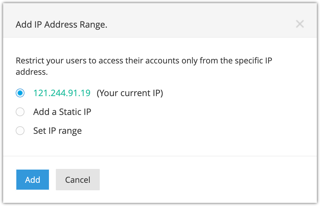 配置好 IP 地址后,用户将无法从上述地址范围以外的 IP 地址访问其 WorkDrive 帐户。