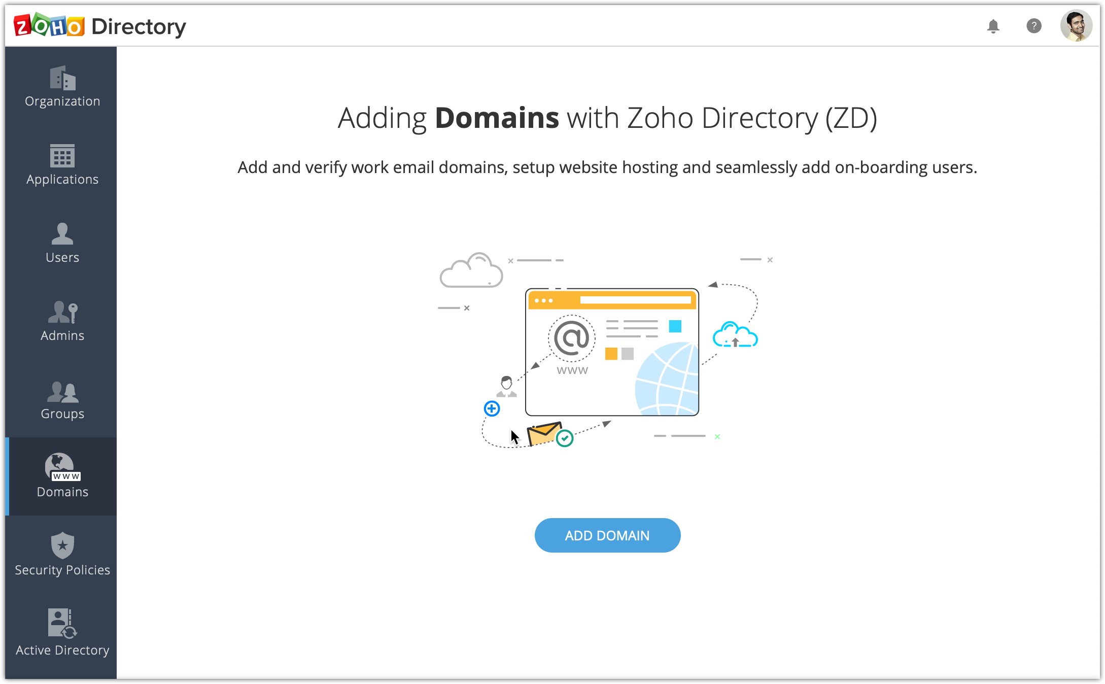 添加和验证工作电子邮件域,并将登录用户无缝添加到 Zoho 应用。