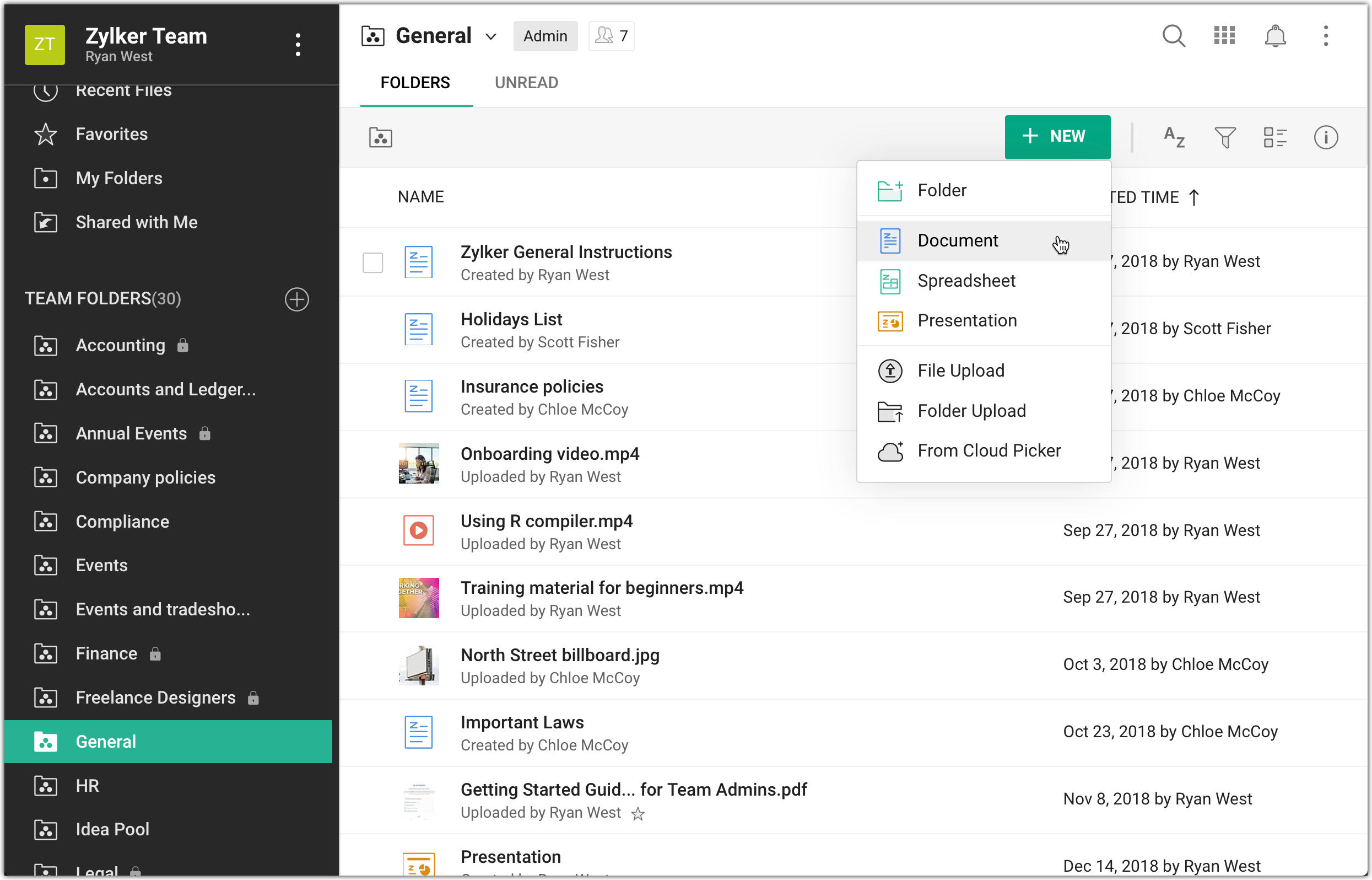 创建或上传文件和文件夹以协作处理团队项目。由于团队文件夹是一个共享空间,因此该团队文件夹中的每个人都可以访问您创建的任何文件或文件夹。