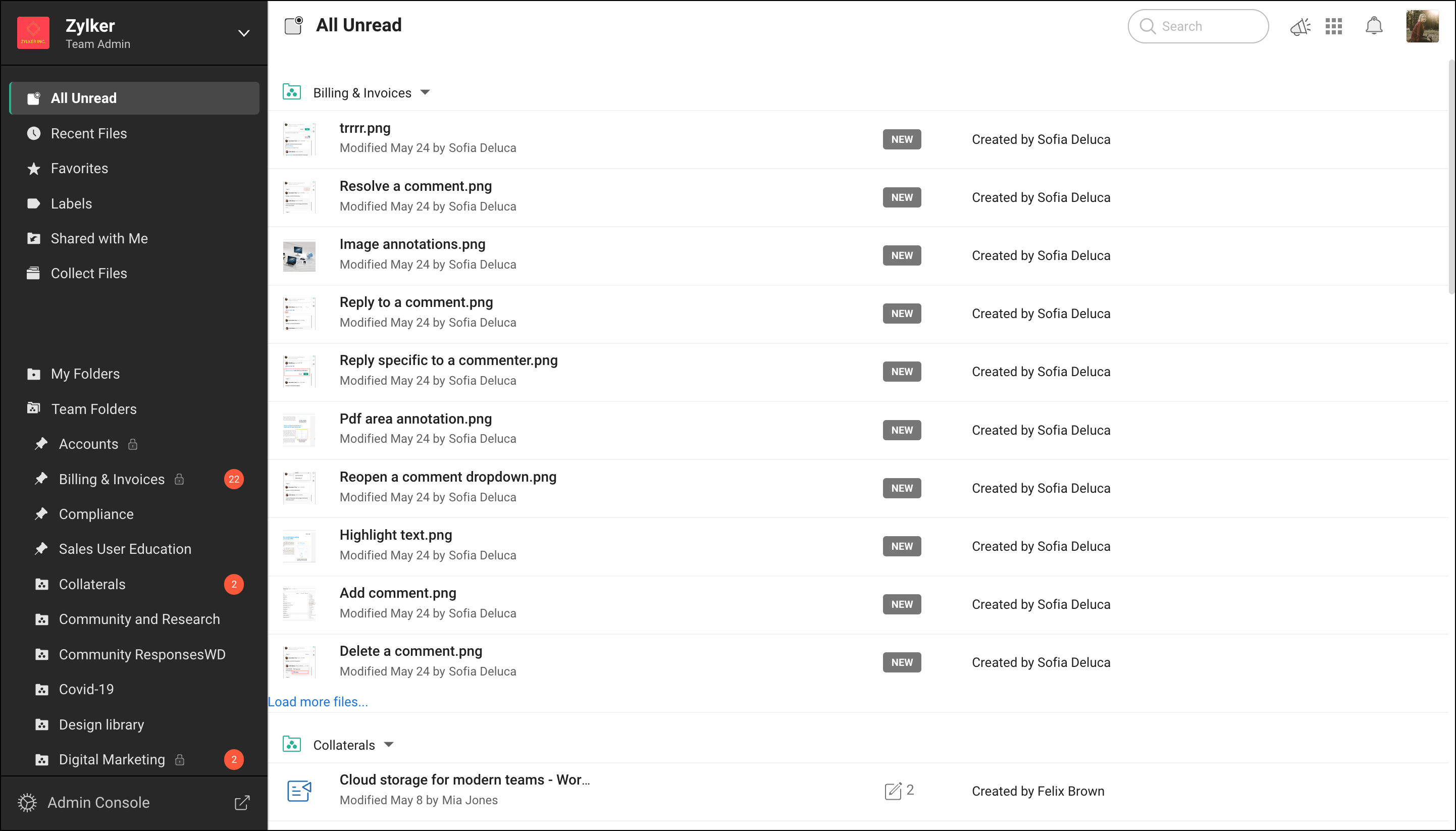 未读通知将帮助您关注自上次访问以来,在团队文件夹中添加或修改的所有文件。