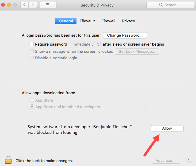 开发商 Benjamin Fleischer 的系统软件被阻止加载。